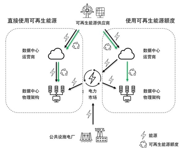 数据中心行业中最流行的两种零碳排放途径是直接使用可再生能源和使用可再生能源额度(RECs)。