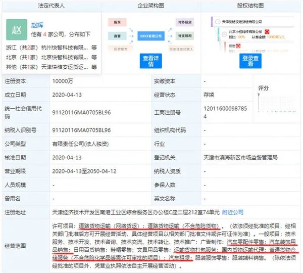 近日,滴滴出行旗下北京小桔科技有限公司投资1亿元成立网络货运平台公司——天津快桔安运货运有限公司。