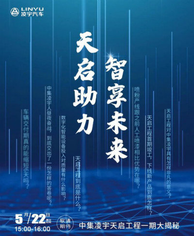 5月22日,中集凌宇天启工程将在卡车之家直播间“云”揭秘,请大家一定要准时进入直播间观看,或许神秘大奖就是你的了!