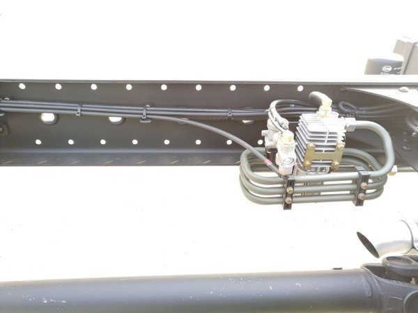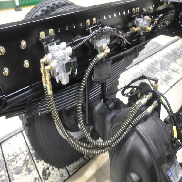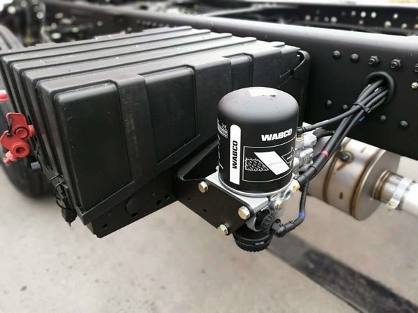 关键阀类件及空气干燥器均采用WABCO产品,全车气管路标配德国VOSS接头,制动气压高达10bar,同时行业唯一标配油水分离器,可以有效去除气路中的水和油,保障气路安全可靠性,提升整车制动性能。