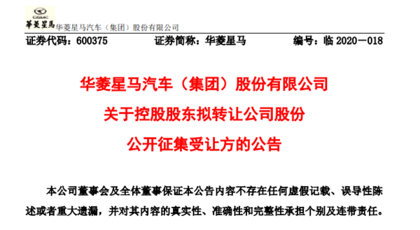 1、华菱星马汽车(集团)股份有限公司(简称:华菱星马)控股股东安徽星马汽车集团有限公司拟公开征集转让本公司24,136,112股股份。