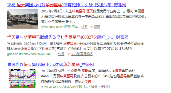当年网上关于华菱星马与恒天集团的新闻