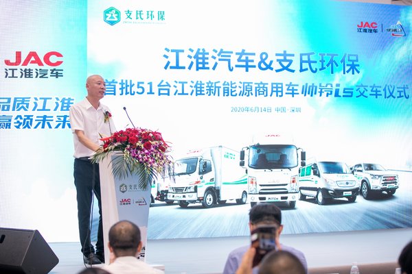 *江淮汽车与深圳支氏环保首批51台新能源商用车交付仪式现场视频*安徽江淮汽车集团控股有限公司党委副书记周刚致辞