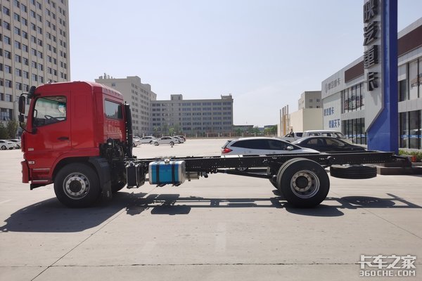 底盘部分,该车型的油箱容积为200L,满足中短途物流需求基本没问题。在使用铝合金油箱、气罐、变速箱壳等多处减重设计后,该车在上装货厢之后的整备质量可控制在8吨以内,可合规装载10吨左右的货物。