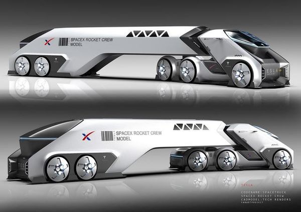 但你以为这就完了吗?并没有,就在Semi重卡进行路试的同一时期,特斯拉公布了旗下又一款电动重卡牵引车效果图,该车型被命名为SpaceTruck。