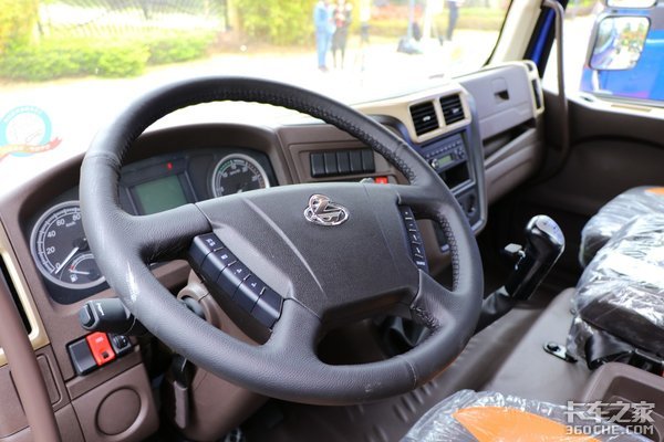驾驶室部分配备了气囊减震座椅(皮革被覆)+机械液压减震驾驶室以确保长途驾驶的卡友腰部的舒适度,并且像多功能方向盘、电调后视镜、定速巡航、电子中控锁等配置也是该驾驶室标配的,整体配置表现不错。
