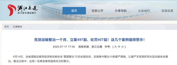 除了这次综合整治行动,浙江省还将制订危化品运输管理办法;加快建设完善“大数据+网格化+全链条”的危化品运输数字化监管平台,争取在7月底前完成建设方案,9月份实现平台提升版的初步上线。(资料来源:浙江省交通运输厅)