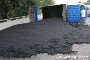 【卡车之家 原创】一辆装满满沥青混凝土货车在行驶途中发生侧翻,事故发生的原因值得所有司机警醒!事情到底是怎么回事儿?