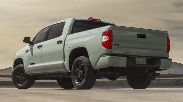 据了解,坦途TRD Pro车型本次增加了Lunar Rock涂装配色,在其他配置方面没有任何改变。Trail Edition车型可以选装SR5升级包,车辆加入了镀铬进气格栅,用户也可以选择包括绿色、灰色在内的全新车辆涂装配色。
