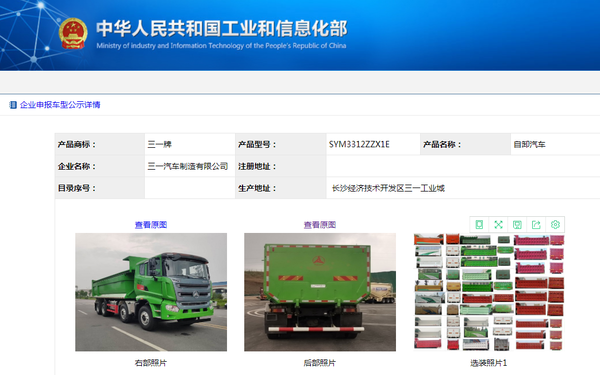 三一重工旗下拥有多款细分领域车型,运营场景针对性极强。而在工信部公示的第335批次公告中,我们也发现了三一重工自卸车的新外观车型。