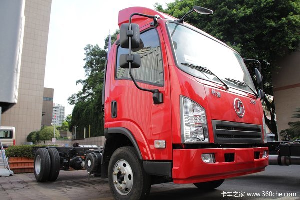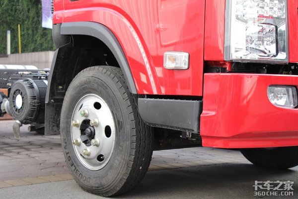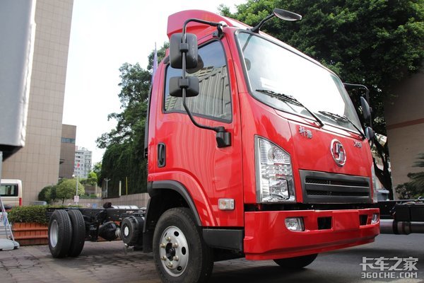 底盘部分,该车采用了前3后后3+3少片簧悬挂以降低自重,并且车架采用了可变截面纵梁以确保承载力和车身轻量化,油箱容积120L,配备前桥盘刹,以提升制动的灵敏性。