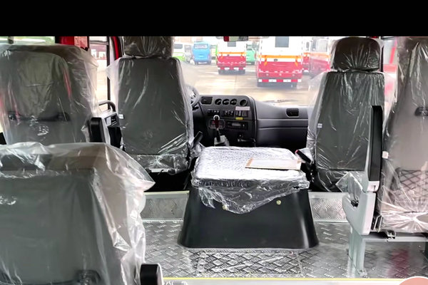 来到车内原本应该是货厢的位置被不锈钢地板和乘员座椅所占据,车顶也由原来的只覆盖驾驶室变成了全包裹,但是这也不能改变它153的影子。