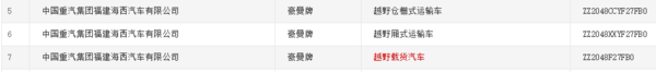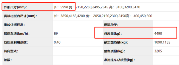 新款越野载货车的长度均为5998mm,均上总质量为4490kg的公告。