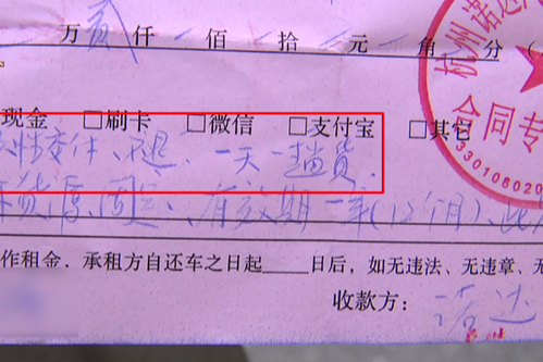 吴师傅表示,当初租车公司还承诺过会有线下货源,起码一天一趟货。收据上也是白字黑字的写着“一天安排一趟货”、“一次性交清不退钱”,但吴师傅却表示自己从来没有接到过线下的货单。