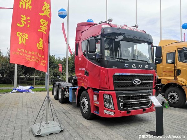 图中的这台燃气牵引车是华菱星马针对时下火热的430标载动力段打造的产品,该车采用了华菱星马CM6T28系列430马力发动机,满足国六排放。传动匹配卡友熟悉的法士特12挡+3.7速比驱动桥组合,可满足绝大部分场景化运输需求。