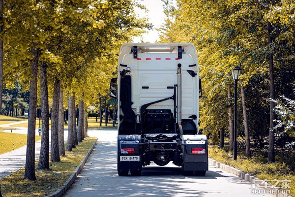 实拍车型侧标显示这是一台搭载全新D26型号470马力发动机的后桥提升牵引车,按照曼恩商用车一贯的做法,MAN TGX新车阵营将会推出MAN机型+MAN TipMatic系列变速箱以及匹配采埃孚Traxon系列变速箱的动力组合。