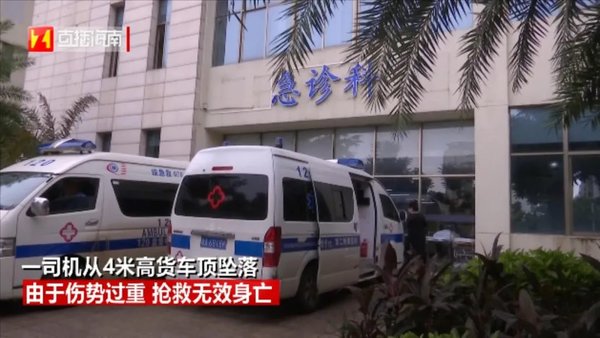 日前,中通快递海口转运中心货车停放点,一名司机爬上近4米高的货车准备卸货时,不慎坠落,被紧急送往医院。据现场目击者介绍,司机正准备从车顶将雨棚拿下来,结果突然就从车顶上摔落下来,当时头流了好多血。