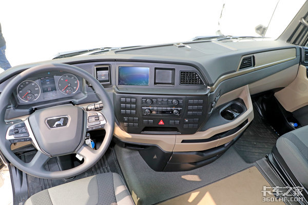 国内发布的全新TGX车型在内饰方面与内外版本车型保持了一致,经过全新设计的四幅式多功能方向盘与中控台布局,更显年轻化。采用的怀挡设计节省了驾驶室内部空间,同时还有自动回位空挡设计,另外缓速器、全自动电子手刹、ESP等辅助功能以选配的身份出现在了车辆上。