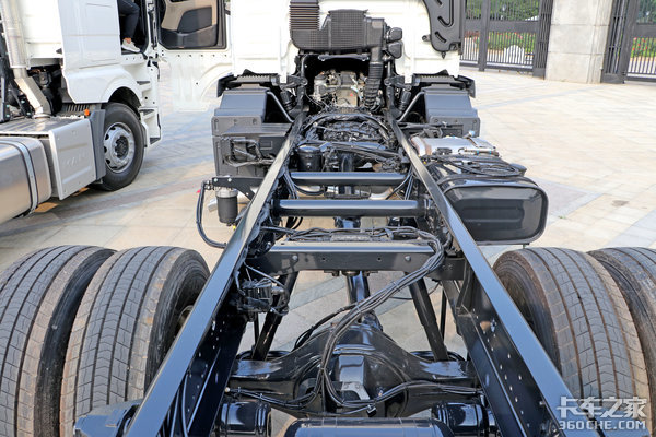 4X2细分车型同样是提供了12.4升D26型号的470马力和430马力两种发动机可选,亦是满足国六排放标准,在传动系统方面与6X2R车型并无二样。现场展出的4款牵引车型皆配备了气囊后桥,在应对甩挂运输时会更加方便,同时所有气罐全部安置在了大梁内部,另外整车油箱可最大扩展至1160(580+580)升。