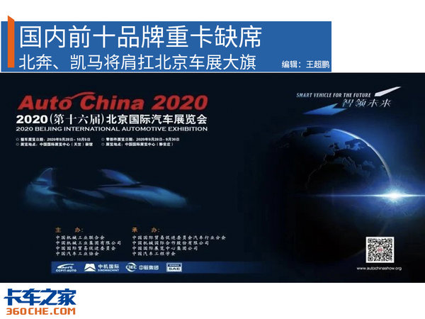 【卡车之家 原创】2020(第十六届)北京国际汽车展览会将于2020年9月26日至10月5日在北京中国国际展览中心新、老展馆举行,展览为期10天。同时设专馆举办“第三届北京国际新能源汽车展”,专门展示国内外汽车制造商在新能源汽车设计、制造上的新产品。对此,卡车之家也会派遣专门的记者团队来对本次展会进行全面的报道。