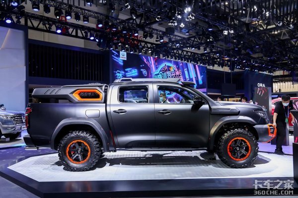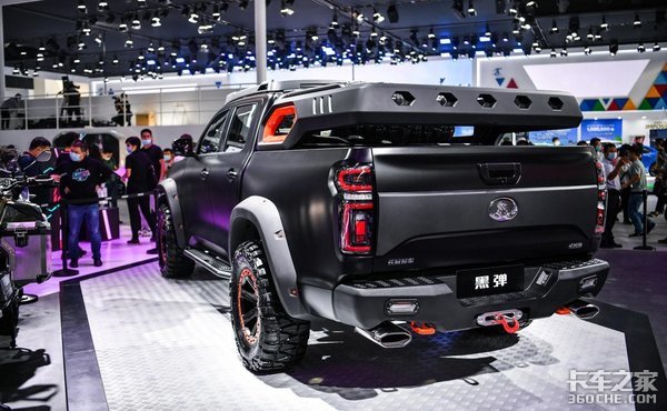 本次车展上,以长城炮越野皮卡改装而来的黑弹震撼亮相,以更加硬朗威猛的造型、黑橙色彩搭配,彰显出舍我其谁的霸气。