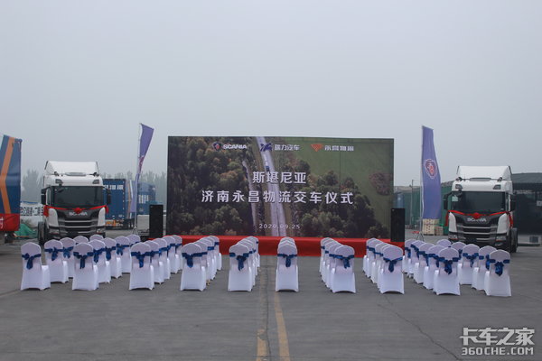 【卡车之家 原创】2020年9月25日上午9点,济宁瑞力汽车销售服务有限公司向山东著名物流运输公司永昌物流交付了为其定制的50台斯堪尼亚G410新车。而本次交付的50台车型皆为斯堪尼亚G410(外加5台G450危化未交),加上之前永昌物流拥有的超过100台斯堪尼亚牵引车,在全部交车后,永昌物流体量将突破150台。