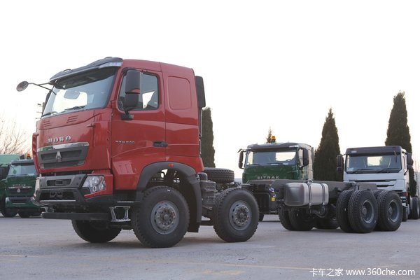 动力部分该车配备了重汽MC13.54-50型号540马力发动机,峰值扭矩2500牛米,传动匹配的是重汽12挡手动变速箱+5.45速比驱动桥。头挡轮上驱动力接近40万牛米,挡位均极差1.28。完完全全的硬汉配置,虽然可能跑不了很快,但一定可以拉的很多。