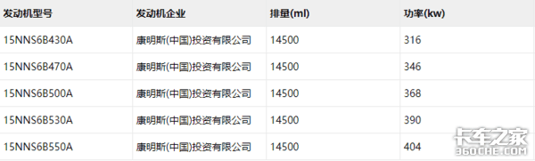 康明斯15升大马力燃气机目前只是在国家工信部上有所公示,当时是装配在江淮格尔发K7车型上,该15升发动机为康明斯15NNS6B系列,实际排量为14.5升,分别提供430、470、500、530、550等五个马力段可选,其他信息暂时不得而知。