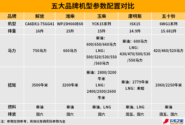 玉柴也是我国的老牌发动机企业,建厂历史、技术都很深厚,同时在15升以上大马力机型方面,玉柴可谓是柴油、LNG两开花。先说柴油机,玉柴目前最负盛名的就是玉柴YCK15系列发动机,发动机排量为15.26升,提供600、650、660三种马力段可选,其中600马力机型最大输出扭矩2800牛米,650和660马力机型最大输出扭矩3200牛米,皆满足国六排放标准。