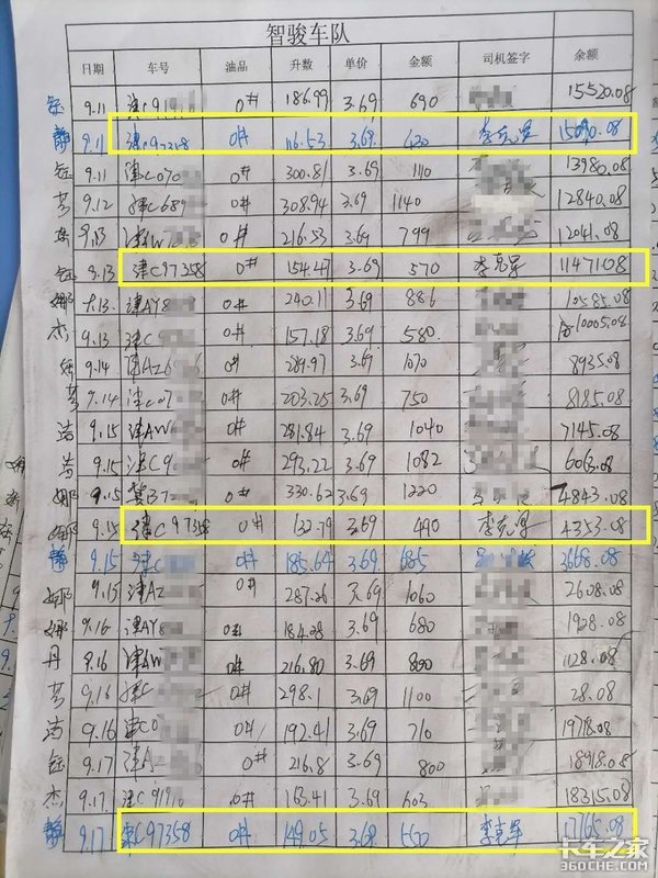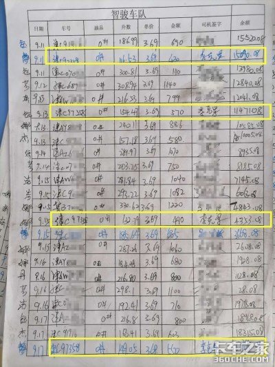 图中标黄为华菱之星加油记录