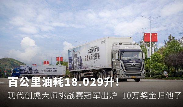 【卡车之家 原创】百公里油耗18.029升!悬念已经揭晓!10月10日,2020现代商用车创虎大师挑战在四川资阳迎来了巅峰时刻。经过数小时的激烈角逐,这场横跨全国四大赛区、参与人次超过数万的节油赛成功打响巅峰之战,来自四川成都的张青渠以18.029L/100km的极限油耗力拔头筹,成功将100,000元大奖收至囊中。