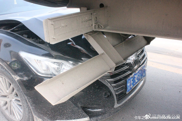 日前,大广高速新乡高速交警接到电话称,大广高速封丘收费站入口处一辆货车与小轿车发生追尾事故。民警到达现场后,发现小轿车的引擎盖被大货车尾部压住已发生损坏。