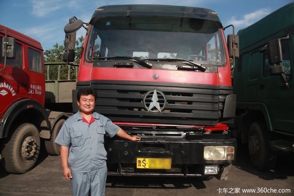 装完需要运送的成品钢材后,吕师傅检查了灯光、轮胎气压、油箱情况后,登车系好安全带,熟练地挂挡驶出公司,一路上与时不时迎面而来的重卡会车,当看到对方也驾驶着北奔车的时候,吕师傅用大车司机独特的“打招呼”方式按下喇叭,对方也鸣笛示意。为不影响吕师傅安全驾驶,一路上没有交谈,我静静地感受着行驶中的北奔重卡,摇起了车窗,防止将大车带起的扬尘飘落进来,行驶了大约一个小时的路程,到达此次钢材运送的目的地,趁着下车歇息的时候,吕师傅跟我讲起了他和这辆“老伙计”的故事。当初来车队的时候,他一眼就看上了这台外形方正,透着喜庆大红色的北奔重卡,更是主动请缨一定要将它作为自己驰骋的“铁骑”。“其实别的司机看见北奔重卡也眼红呢,都知道北奔车耐造,当时我是第一个提出要开这车的。”说完开心地嘿嘿笑了起来。果然北奔车没有令他失望,从来没“撂过挑子”。对于北奔驾驶室双空腔结构、鱼腹型变截面不等宽复合梁等特点吕师傅无一不知,之后又兴致勃勃地说起了车桥,“北奔车桥承载高、通过性好,一旦重载遇到比较深的沟坎,多难搞的路面我们也有底气开过去。”眼前这台北奔NG80牵引车随着时间推移陪伴他跑过了一百多万公里的路程,用他的话来说,“就是好,从来没‘头疼过’,拉多重的货,跑多远都没有一点问题,获得的‘效益标兵’就是因为北奔重卡的故障少,维修保养成本少”。