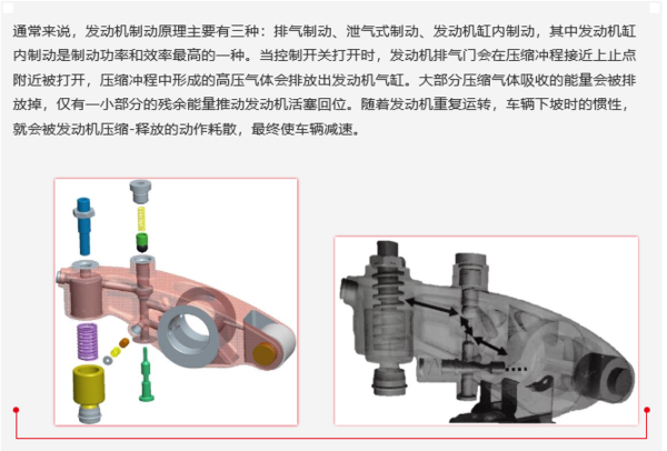 简单的说,为了让车子跑起来我们需要踩油门,而减速只是放掉油门,不需要其他制动方式,这时候就是利用发动机制动。发动机制动系统对提高运输效率、减少行车事故发生、提高行车安全起着越来越重要的作用。