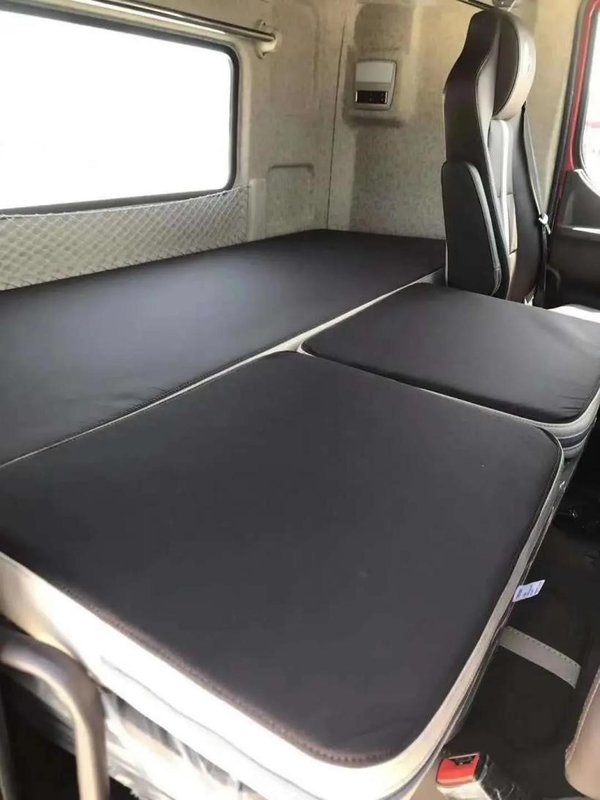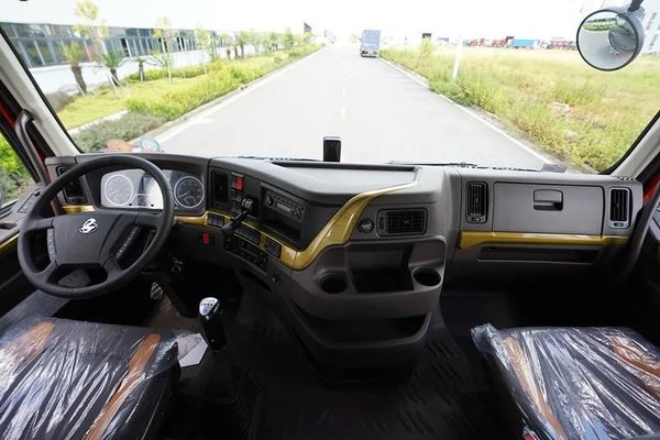 外观上,全新前面板、夜间发光LOGO让车辆外观看起来科技感十足。内饰配置上,2.5米宽体平地板驾驶室、高端集成式气囊减震座椅、多功能方向盘,让驾乘更舒适、便捷;可选南方包(挡雨板、驻车空调、通风座椅)、北方包(独立暖风、座椅加热)、四季包,适应多地气候,让用户享受四季如春,舒适随心驾乘体验;可选家居化卧铺、旋转座椅,让下卧铺由单人床秒变1.2米宽豪华床位,驾乘人员随时奢享如家体验。