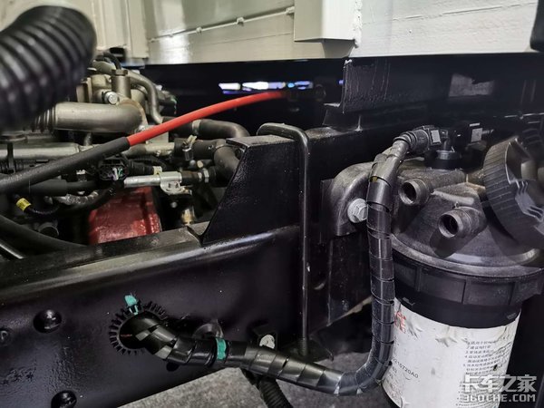 为确保车辆拥有可靠的承载性能,这台福田瑞沃小金刚采用了双层直通梁,610高强钢板铆接,并带有80副车架,以确保其在重载状态之下车架的稳定。