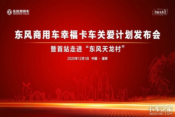 12月1日,东风商用车幸福卡车关爱计划发布会暨首站走进“东风天龙村”活动在河南偃师圆满举行,来自偃师当地的卡友代表以及多家区域、行业媒体共同见证东风商用车幸福卡车关爱计划的发布。