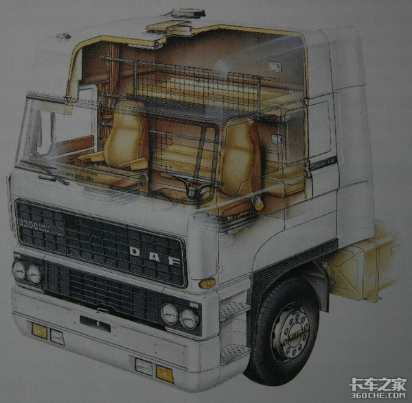 高顶驾驶室前上部带有两个分体式储物格,主副驾驶位均采用带有腰部支撑的气囊调节座椅,上、下铺的垂直高度达到900mm,即使把这个配置放到2020年,也丝毫不落伍。此后,也奠定了达夫卡车在卡车舒适性的特点及优势。