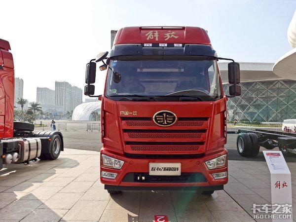 主要配置:CA6DM2-46E52系列460马力发动机,传动匹配一汽解放12挡变速箱+3.417速比498冲焊桥。1100mm低鞍座设计+气囊悬挂,4000mm超长轴距。配J6P高顶大排半驾驶室,采用BOSCH转向机,埃比电子油门踏板。