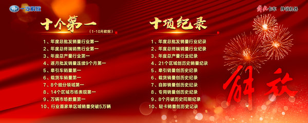 【卡车之家 原创】尽管受疫情影响,2020年商用车行业面临诸多挑战,但一汽解放立足当下,以用户为核心打造绿色、环保、节能的产品获得非常多用户的认可。在即将过去的2020年(1-10月),一汽解放也在商用车行业内取得“十个第一”和“十项记录”的好成绩!下面我们来看一下。