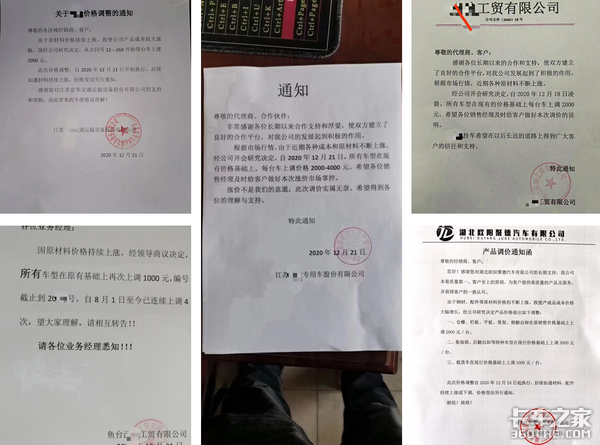 先来说说钢材涨价,受近期原材料价格上涨,在迅驰专用车、驻马店中集华骏等企业发布上调挂车价格后,又有多家企业相继发布“涨价通知”。