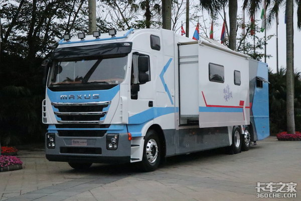 除了传统的牵引、载货、工程车之外,此次年会期间,红岩还展出了一款MAXUS高端房车。这款车基于杰狮6X4底盘打造,配备科索11升发动机,最大功率可达到430,能够应对多种复杂路况。