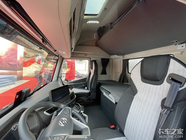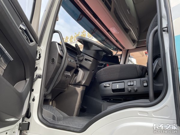 平地板驾驶室对于高端重卡来说也是必不可少的,底部容积较大的储物箱实用性还是相当不错,由于没有了手动挡把的干扰,车内整体的空间感还是非常不错。