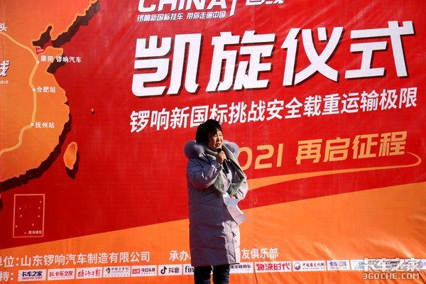 仪式伊始,由锣响副总经理兼董事长助理彭玉华致欢迎词,她表示:“代表集团公司和全体员工向队员勇士们表达对你们的期盼、挂念、祝贺、感谢之情。这次穿越中国线,我们抱着必胜的信心,再次用两万公里的极限挑战验证了产品的性能,安全可靠值得信赖,用事实证明了锣响新国标挂车有足够的能力应对最复杂的路况。”