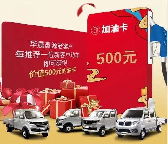 在国产商用车市场深耕多年,华晨鑫源金杯卡车的品质有目共睹,为了让更多车友开上高品质的良心车、放心车,华晨鑫源金杯卡车还为老客户准备了价值不菲的“转介大礼包”。活动期间,只要老客户推荐新客户购车,即可获得500元加油卡,多劳多得,上不封顶!想给车友推荐省心好车?华晨鑫源金杯卡车等你来光顾!