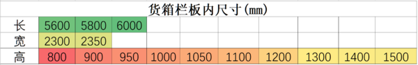 货箱栏板内尺寸(mm):