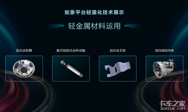 官方资料显示,在奥铃蚁象平台的轻量化技术中,在车辆传动轴、支架等部件上也采用了轻量化的铝合金材质。与传统的轻量化轮辋、变速箱外壳相比,轻量化部件覆盖到传动轴,这覆盖面就明显更广了。此外,在这一平台技术中我还看到了一些其他的亮点,诸如零部件的结构与工艺的创新等等,下面咱们再多聊一些。