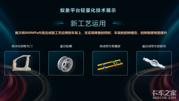 发布会上,奥铃还重点介绍了自家的蚁象平台。这个名称对于关注新车的卡友们可能并不陌生,它在前一段时间就出现过。如果剖开包装,其实这项技术就是一个通过轻量化材质和部件结构优化,实现车辆减重的技术。