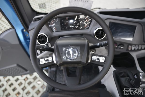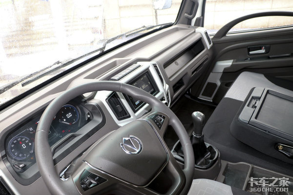 驾驶室整体采用黑灰色系的内饰配色,主驾座椅可四向调节,人体坐姿靠背角可达20度,搭配皮革软扶手,很有乘用车驾驶感受。蝶形设计组合液晶仪表,造型新颖,可显示丰富的车辆信息,读取相当直观。独特的氛围灯设计,看起来也更酷。