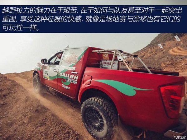 在驾驶体验开始之前,还是先来了解一下我们的主角,经过赛化升级的纳瓦拉赛车。在环塔以及丝绸之路越野拉力赛上,纳瓦拉赛车参加的都是T2量产组比赛,所以整车除了必要的安全以及底盘强化之外,赛事要求发动机以及变速箱必须是原厂状态.
